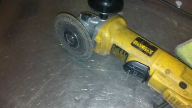 aquí vamos a hacer algunas cosas para prepararnos para la soldadura. primero tomé una lijadora orbital y enarenada apagado una U en las esquinas más pequeñas que tienen todo a soldar pero para conseguir una mejor soldadura en a través de era perforó los agujeros.