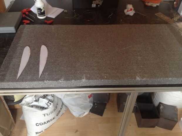 Usé cartón pluma como material principal para construir mi UAV. Y para dar forma a la espuma ı utiliza método de corte de alambre caliente de alambre de la resistencia.