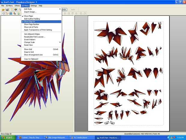 4) cada borde tiene un número de identificación correspondiente a la arista que aparea con. Usted puede convertir estos números encendido o apagado con los menús: menú 2D \ Mostrar borde ID puede o no desee trabajar en el diseño de la plantilla con la identificación del borde encendido, pero son una bendición más tarde cuando todo imprimir y montar. Desventaja es que el papercraft terminado tendrán números pequeños por todas partes. Sin embargo, si estás siguiendo este tutorial exactamente, entonces números por todas partes no importan. Usted verá por qué, más adelante.