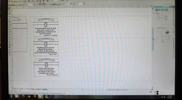 Encontré una ilustración de una caja de herramientas que me ha gustado mucho. Me di cuenta de lo que formas donde participan. Por suerte todo lo que necesitaba hacer era utilizar formas. Necesitaba llevar los bordes la parte superior de mi caja. Yo sabía que había aprendido que en mi corel draw clase en el TechShop pero no podía recordar cómo sacó el manual de mi curso y me encontró las indicaciones.