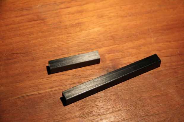 Luego corté una longitud de 150mm de fibra de carbono en dos pedazos de longitudes de 100mm y 50mm