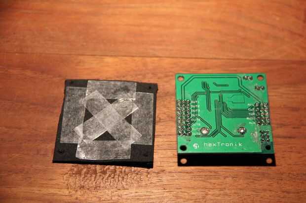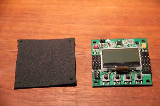 KK2 1.5 es el cerebro de tricopter todo. Para prepararla corta un cuadrado de espuma negra con el tamaño de la kk2, había perforado de agujeros y había pegado a la parte posterior de la KK2 usando cinta de doble cara. Este paso no es necesario pero debido a que nosotros se esconde un montón de cosas por debajo de ella quería ser salvo de pantalones cortos. La espuma también proporciona una vibración agradable amortiguación cuando se monta directamente a un fotograma (pegado encendido con más cinta o parecida) y añadir una pequeña vibración humedeciendo cuando conecte cómo vamos a (en plataformas elevadas).