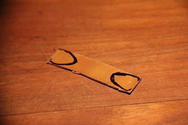 El arnés Y se utiliza para dar energía de nuestra batería a todos tres ESC. Para comenzar con tomó una pequeña longitud de tubo de cobre, corte el lado y abrió en una tira plana (sólo podría comprar hoja de cobre pero no tener alguno a mano). Entonces más o menos redacté las formas quería y había cortado con una sierra para metales, terminando los bordes con una Lima.