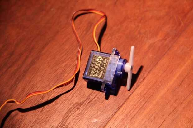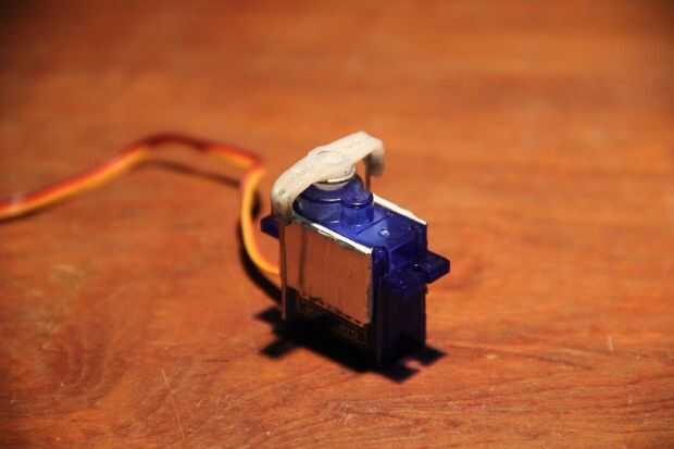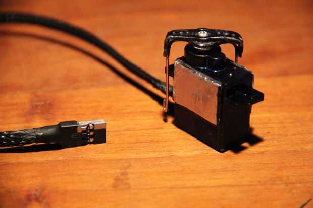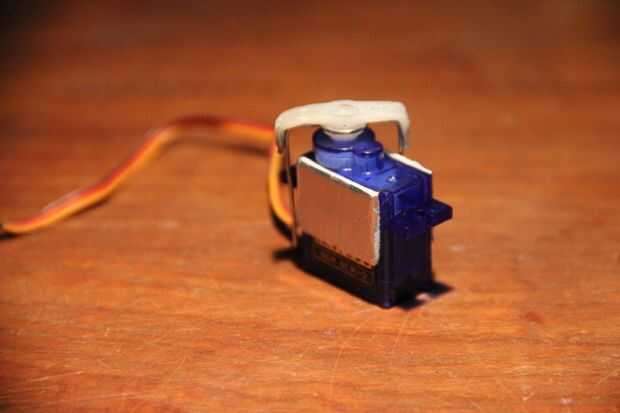 Para hacer a la segunda mitad del interruptor tomé un clip y doblado como se muestra para caber "dentro" de horn de servo que dobló antes. Yo Entonces superglued en lugar y une la Asamblea entera del cuerno en la parte superior del servo