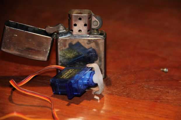 Utilizando un mechero dobló el cuerno del servo en la forma que se muestra (una especie de forma de C). Este paso no es necesario pero proporcionará apoyo extra para el clip de papel más tarde.