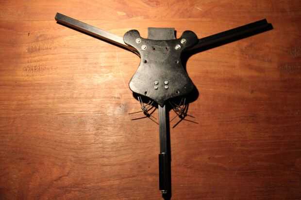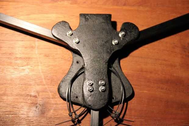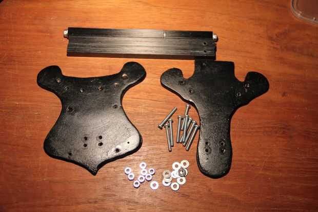 Para montar el cuadro tomé las dos placas principales, los brazos laterales y tubo de cola, así como ocho pernos 25mm M3, ocho tuercas de M3 y 12 arandelas M3 (no usar arandelas en los pernos eventualmente terminaría bajo la KK2 para que pudiera ajustar más de la basura que quería esconder debajo la KK2). Entonces reuní el marco como se muestra usando loctite azul en cualquier conexión de metal a metal. Asegúrese de no hacer demasiado apretado, de lo contrario no podrás doblar los brazos hacia fuera completamente los pernos de parada para los brazos. También encadenan cuatro pares de abrazaderas de plástico alrededor de los pernos que sujetan el tubo de cola en su lugar (esto es más fácil hacerlo antes de corredera en el tubo de cola y apretando todo abajo). También puse los cuatro tornillos para fijar la KK2 (también M3 25mm) a través del marco porque son increíblemente difíciles de añadir después de la ESC se han apretado hacia abajo.