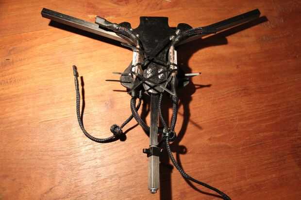 construí mi primera pesada ballesta cuando tenía unos 13 años de edad. Era un aparato bastante potente, impulsado por una cinta de goma - un 10mm Junta tórica me 'encontró' en un lugar público - y armados con dardos de madera personalizados. De acero
