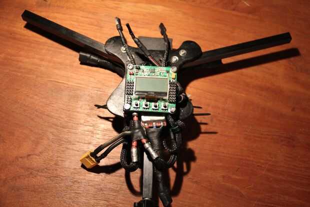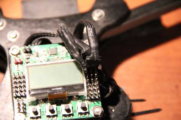 La KK2 se coloca sobre todo lo que hicimos en el último paso. El arnés Y todos los anillos de ferrita como los extremos de los cables de señal deben atenerse la los lados de la KK2 otra manera que no pueda obtener la KK2 descansando en los ojales. Esto es donde la espuma que coloca en la parte posterior de la KK2 en uno el paso anterior entra en juego para evitar cortocircuitos en la KK2 en nada por debajo de ella como el disipador de calor grande de la ESC.