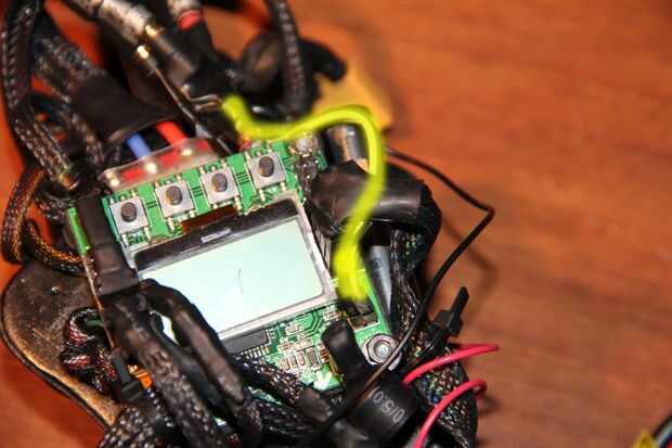 En la última foto se puede ver donde he enchufado los puentes de lo arnés Y a la KK2. Esto nos permitirá leer el voltaje de las baterías directamente fuera de la pantalla seguro de la KK2 y también nos dejó utilizar zumbador de KK2 (o en mi caso lo canto) como una alarma de baja tensión para saber cuando a la tierra.