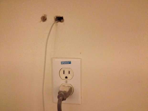 tenía un enchufe en el otro lado de la pared así apareció un agujero a través de energía permanente.