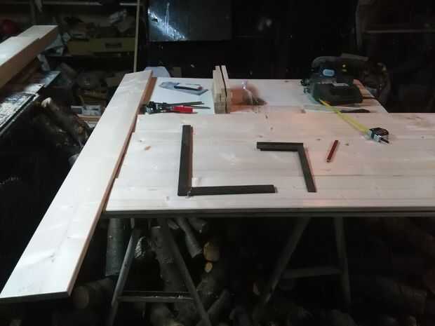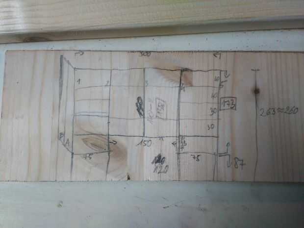 Corte las piezas verticales para tamaño, pone en orden al lado del otro y marcar su partidario de librería. Al final debe ser absolutamente horizontal, thatswhy les puse en parejas, alinea la parte inferior y marcado juntos.