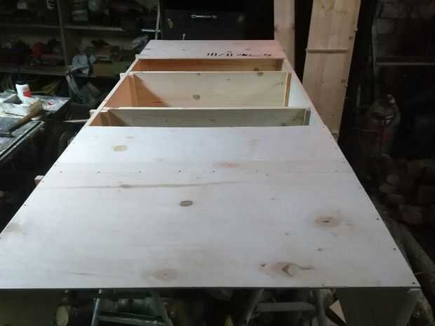 También aquí hacer la parte media de la vertical. El estante inferior que conecta la dos librerías (sobretodo el pianino) es una pieza de 150 cms.