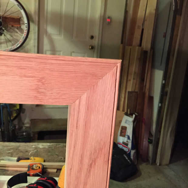 Me ha pasado que algunos roble rojo fino que voy a usar para otro proyecto. Bastante seguro que tenía lo suficiente como para 'pedir prestado' para un marco... No sé qué tan amplia es la madera. Usé varios trozos de mi caja de chatarra para encontrar algo con las dimensiones que me ha gustado. Una vez que tuve la dimensión puse mi mesa Sierra y uno de mis consejos corte ancho.