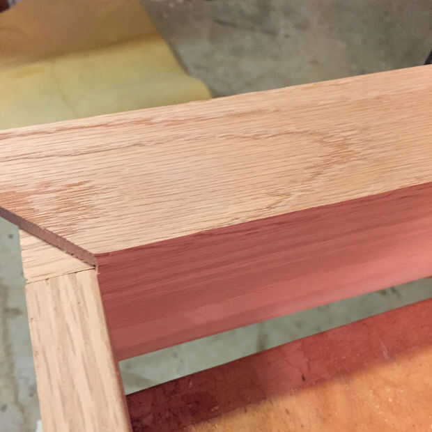 Primer corte fue un inglete 45 grados en la sierra trozadora. Con el primer corte me puso el Consejo en mi caja y había marcada la esquina. Vuelta a la chuleta de sierra y corte sobre mi marca. Repite para la parte superior e inferior. Una vez más, una vez que tenía la longitud de lo lados conjunto corto ambos lados al mismo tiempo para asegurar que eran idénticos. Repite el proceso para la parte superior/inferior.