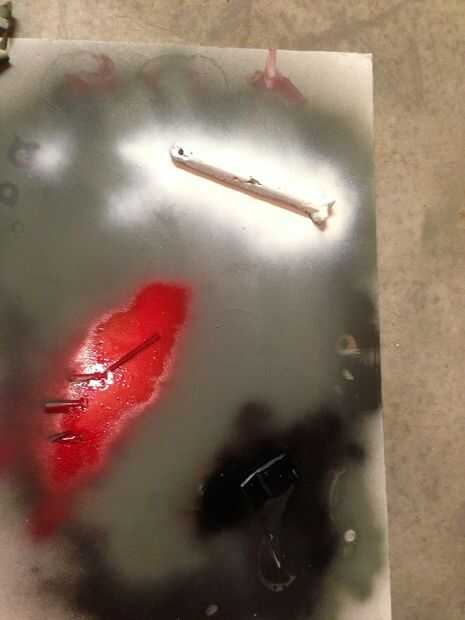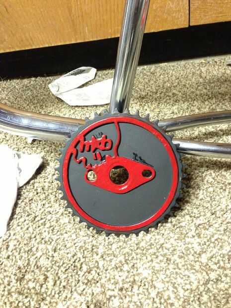 he pintado el tema del cromo de la moto, negro y rojo. La rueda dentada fue pintada de la misma manera. Guardé el hueso blanco, sale bien y se ve bien. Usé uno mismo grabado pinturas esmalte primer, negro, rojo y blanco.