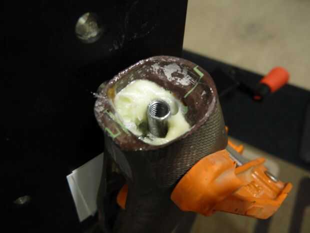 - Llenar el final de la t-tuerca con pegamento caliente para impedir que penetre en los hilos epoxy.