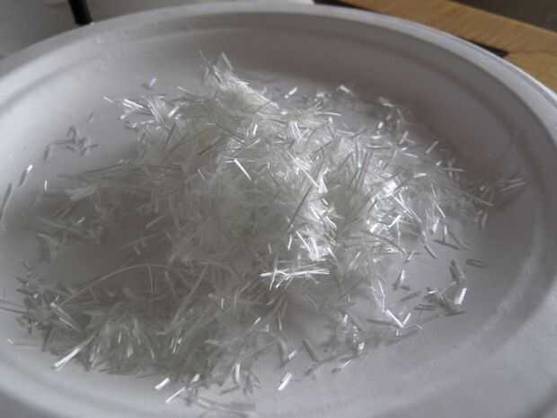 Hice el "vidrio picado" por encima de un paño de fibra de vidrio de corte a alrededor de 1/4" a 1/2" longitudes y burlas los filamentos separados para hacerlos más aleatoria.