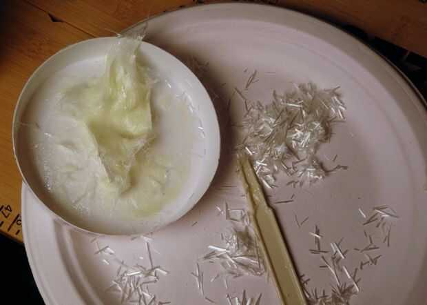 - Mezcla de filamentos de vidrio en su epóxido. Vas para obtener una consistencia pastosa
