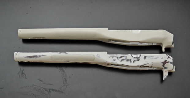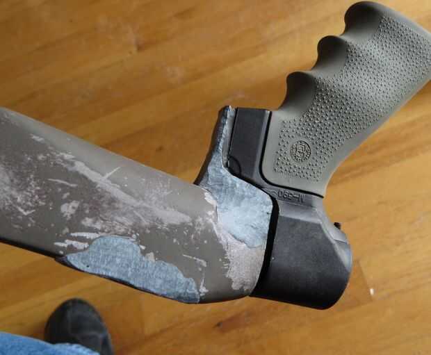 En este punto, vas a querer dejar que las manos hacen "ver" para encontrar cualquier protuberancias o esquinas que son incómodas o molestas - y deshacerse de ellos. Mantener control y ajuste el Sculpt de Epoxy alrededor de la empuñadura hasta que de suave y confortable a la mano. No te preocupes que este super - lisa - lija de grano 150 debe ser suficiente - como piensa sobre el uso de alguna imprimación de relleno en el paso siguiente.
