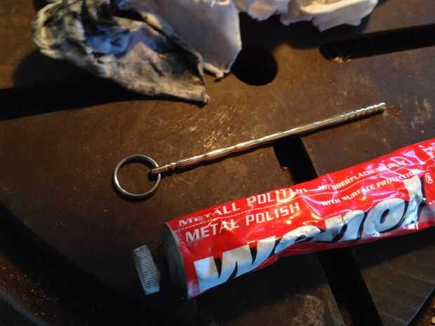 Utilizando papel de grano fino de arena, la arena y luego pulir el bronce.