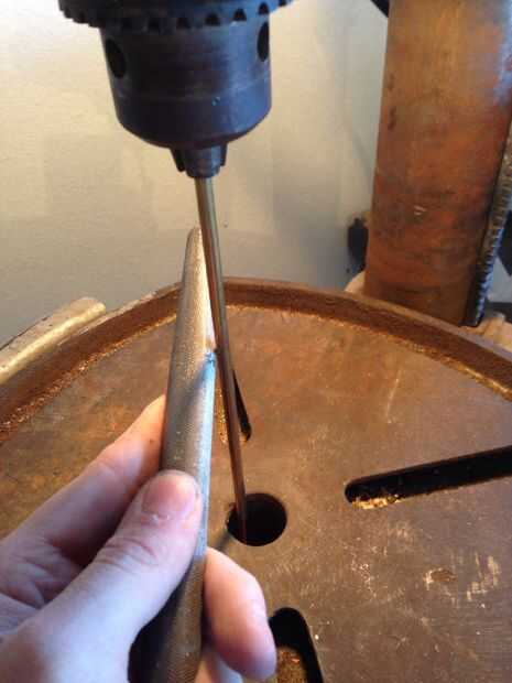 Usando una variedad de archivos, forma el latón al contorno deseado. Básicamente lo que estás haciendo es usar el taladro como un torno. Así que usar seguridad!