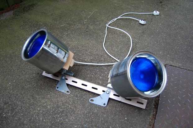 Aquí utilizamos algunas latas de café para proteger los bulbos, ya no tiene que preocuparse acerca de geles (que ya están coloreados) o lentes (que ya están enfocadas como inundaciones).
