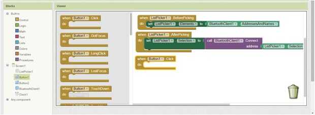 Como antes de "Bloques" a "Screen1" al "Button1" arrastrar "cuando Button1. Haga clic en no"en"Espectador".