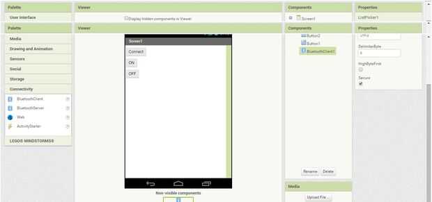 Ahora, de "Paleta" en "Conectividad" "BluetoothClient" de la barra y caer en la pantalla.