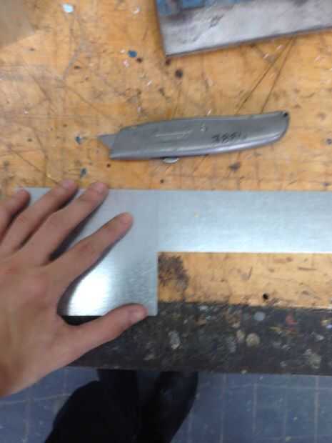 Ahora usar la dobladora de chapa para doblar exactamente sobre la marca.