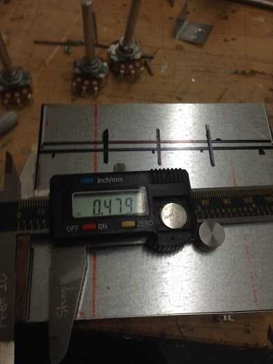 Utilizar los calibradores digitales para encontrar el centro del contorno de los potenciómetros