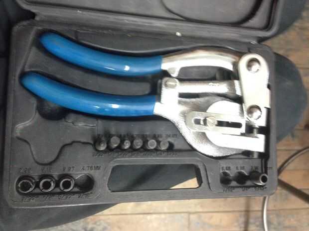 Hacer una guía para el sacador de agujero utilizando el punzón para marcar ligeramente el centro del contorno de los potenciómetros. Esto ayuda al agujero de sacador poco línea sí mismo para arriba.