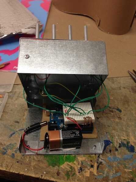 La última imagen situar los soportes como tal y adjuntar solamente la pieza del fondo. Más adelante vamos a pegamento caliente hexagonal tuercas en el interior de los soportes para tornillos y cerrar el recipiente.
