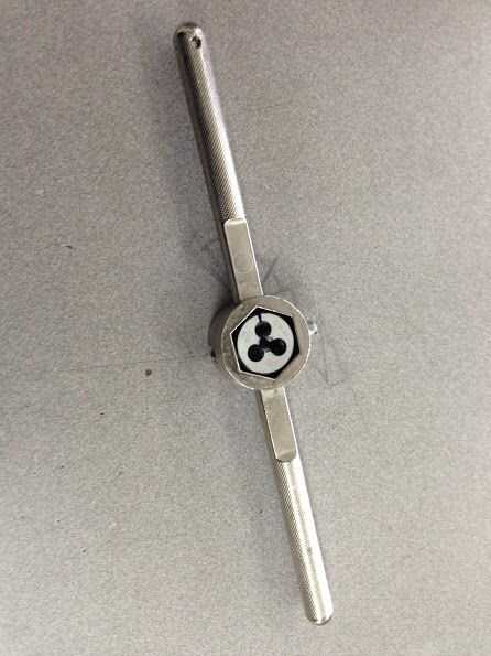 Apriete el tornillo y use una escuadra de ingeniería para obtener el nivel de la varilla con el vicio. La parte difícil está utilizando el dado y rosca cuadrada con la varilla. Es crucial para los hilos a ser tan recta como sea posible o su botón giratorio se torcerá. Que tienes un montón de varilla para hacer las cosas bien. Una vez que el dado es threading nivel, mantenga un poco pasando de una pulgada, si no tienes las tuercas hexagonales de más de un cuarto de pulgada, entonces consolidar 4 tuercas.
