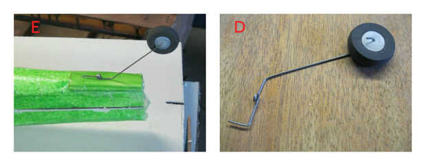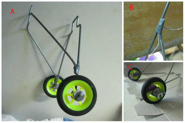 D: Alambre mediano para el engranaje de la cola. Esto fue un poco más ligero puede doblar en aterrizaje y necesito doblar hacia atrás.