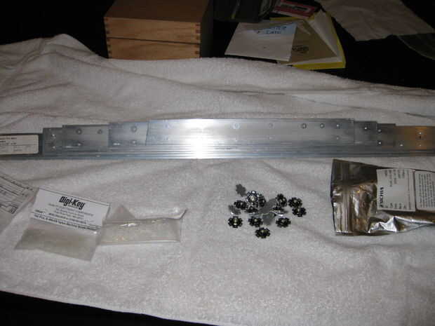 Así que miré en mi contador y encuentra un surtido aleatorio de luces fluorescentes. Tengo un montón de espacio entre dos tramos de cinco pies de gabinetes en un contador de 24 pies que incluye el fregadero y la estufa. Los tramos de cinco pies eran diferentes, uno tenía un cuatro pie fluorescente y uno tenía un pie dos y un pie. Supongo que eran "lo fue en la parte trasera de la camioneta" diseñado... Ahora tuve la oportunidad de incluso las cosas. He medido que el espacio disponible y subió 16,5 pies de espacio total dividida en secciones de 5, 3, 1.5 un 1 pie. Basado en la salida de luz he querido que surgió con la necesidad de alrededor de 400 lúmenes por pie. Mi LED fueron 70 lúmenes por vatio conducida 350ma (alrededor de 1 vatio). A 440ma determiné que pude obtener 90-100 lúmenes. Después de modelar esto en excel pensé que necesitaba un LED cada 2,7 pulgadas. Doblé hasta 2,5 pulgadas.