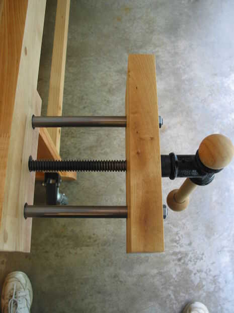 = > Con la bancada al revés, completar el montaje del tornillo de banco. Luego voltee la parte superior y prueba de la prensa de tornillo para asegurarse de que se abre y se cierra como debería. Toma de mí, es muy fácil de armar la mordaza incorrectamente. Las direcciones (y fotos) para la prensa de Rockler compré muy buena ubicacion y, en consecuencia, había montado en el marco de la prensa hacia atrás al atornillar a la mesa. Eso significaba que los bancos la mesa muy pesada varias veces hasta que finalmente me di cuenta de mi error. No la diversión!