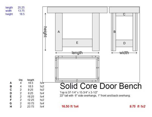 Esta mesa es 37,25" largo, 15,75" y 3.50" de espesor. Este banco debe ser de 22" de altura con 6" lado salientes y voladizos de 1" frente. Esto significa que la base debe de ser 25,25"(37,25-6-6-8) largo, 13,75" (15.75-1-1) de ancho y altura de 18,50"(22-3.50).