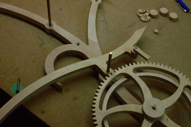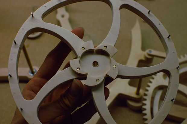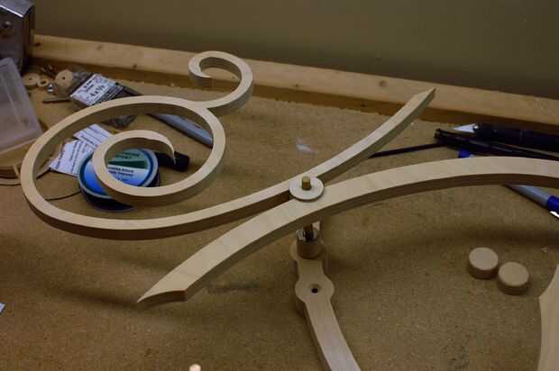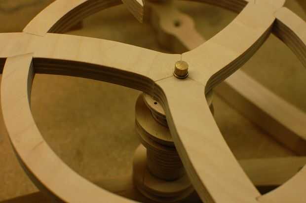 En este punto, es una buena idea para girar y torcer las diferentes partes móviles para asegurarse de que pasan limpiamente sobre y debajo de las otras partes en movimiento. Tuve un problema con el triskele entre en contacto con la tapa de brazo flotando, así que levanté del triskele aproximadamente 1/4" de la estructura.