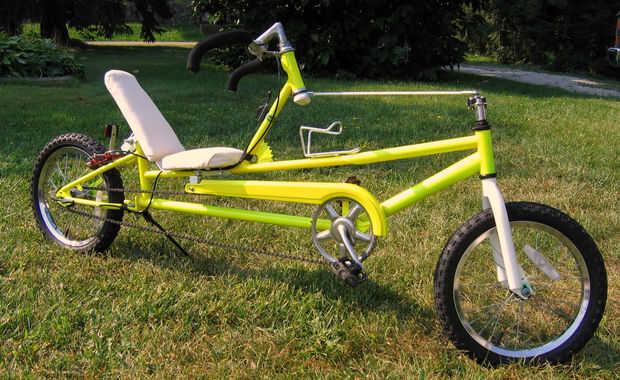 hace unos años compré este doblez para arriba de la bici en una tienda de excedentes del ejército local y fue bien durante un tiempo. Más tarde, pensé que convertiría en una bicicleta reclinada. Yo estaba investigando en la web y se convirtió en real