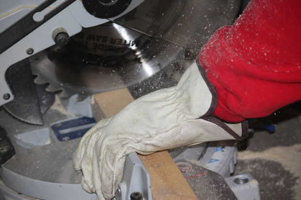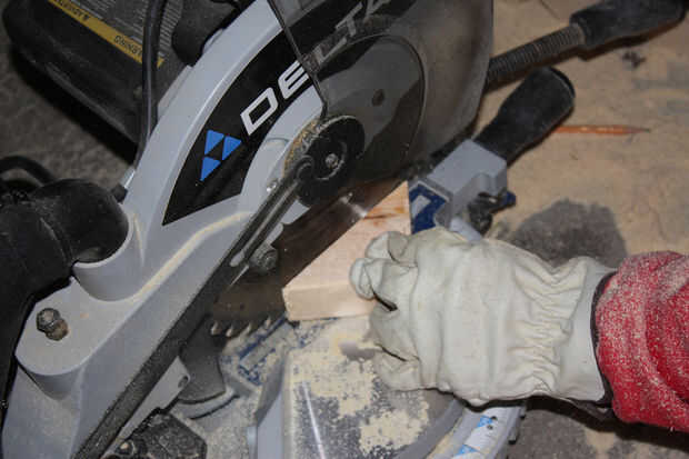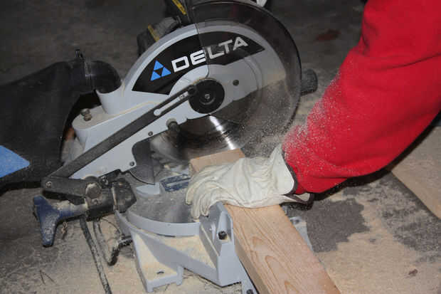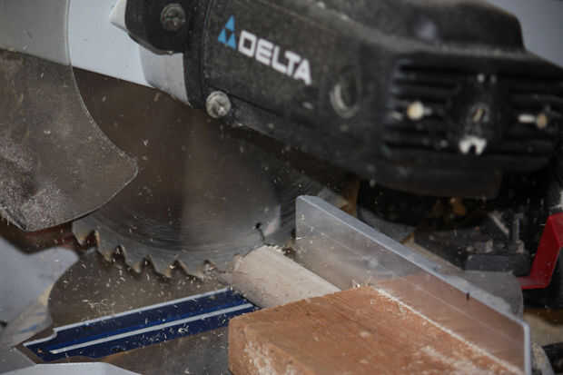 Utilicé mi compuesto ingleteadora, si no tienes uno, puede utilizar una sierra de mano y una caja de ingletes.