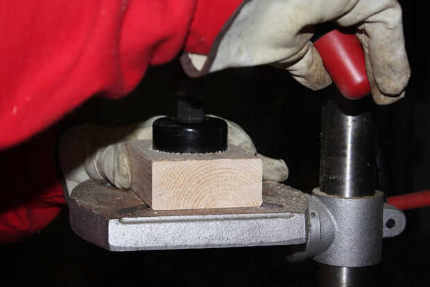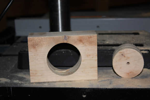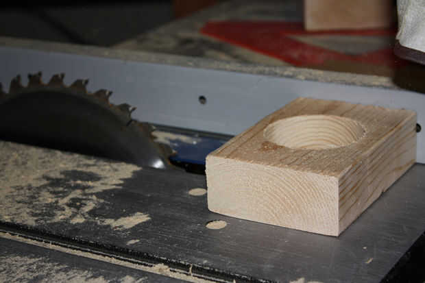 (1) Perfore un orificio de 2.5" en el centro del bloque.