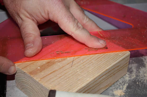 Esto puede lograrse con una 2.5" agujero broca. En primer lugar, tenemos que encontrar el centro del bloque. Bastante fácil... a trazar una línea desde esquina a esquina y buscar donde se cruzan en el centro.