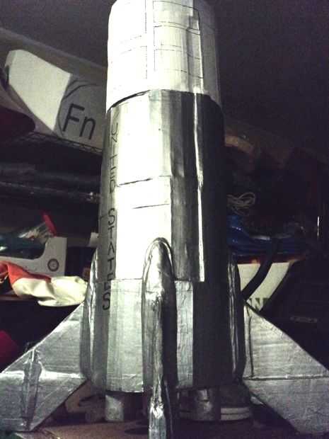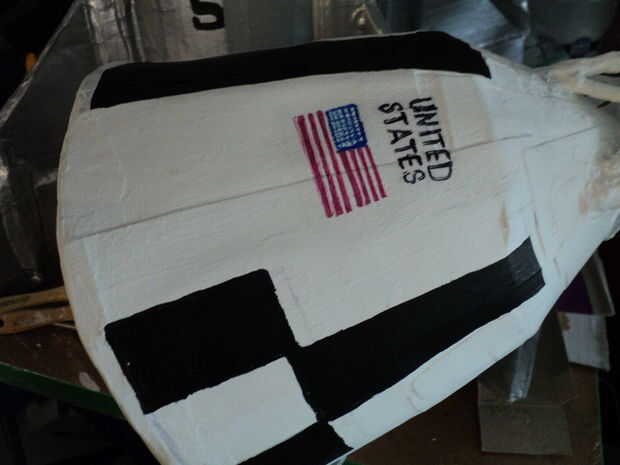 No tenga miedo de tocar su trabajo luego a hacer las cosas buscando justo. Utilizo cinta adhesiva a la máscara de la parte blanca de la parte inferior plata del cohete. Fue sólo más rápido hacerlo todo pintado a mano alzada.