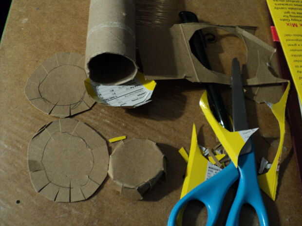 Usted puede pegar un tubo laminando tiras de papel alrededor de una forma. Supongo que debido a las eficiencias de fabricación hoy en día, tubos de papel de rollos de toalla de papel minimalistas en que son endebles. Crear algunos mamparos o tapas de los extremos para pegar en el tubo para endurecer encima de. Trazar el final para el tamaño y después corte de eso círculo alrededor de un cuarto de pulgada para splay hacia fuera para pegar pestañas. Empuje en el tubo de pegamento en el lugar y forma.