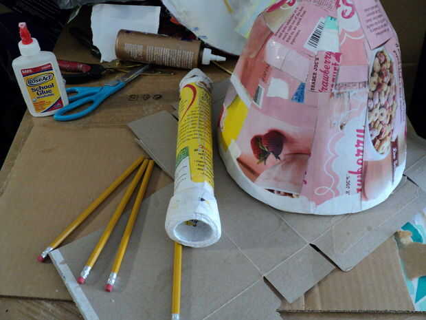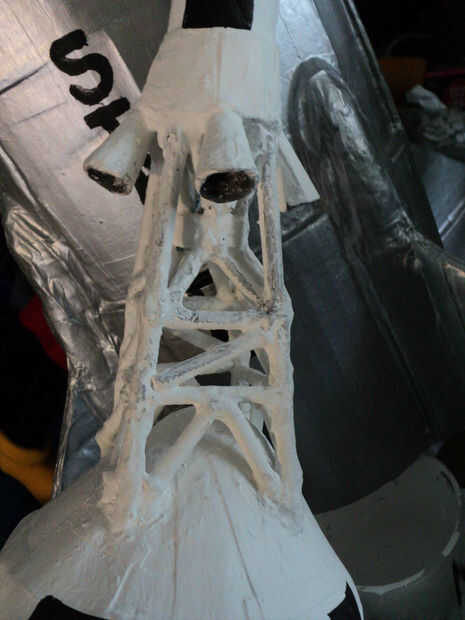 Hay una estructura de celosía que soporta el cohete de escape. Tradicionalmente, ser modelado con pedazos de madera espiga con cada lado construido primero y luego pegadas. Cortar a la medida y sólo pegamento para arriba sobre la la disposición de armadura tamaño real cubierta con envoltura de plástico.