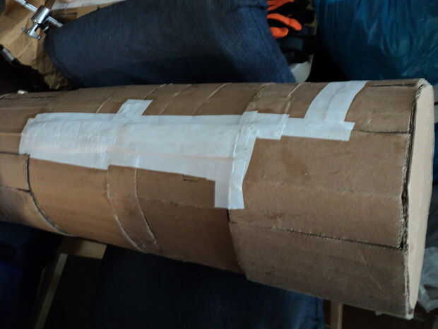Cortar algunos mamparos y me pega unas tiras de cartulina para formar una estructura tubular sobre la piel con cartulina.