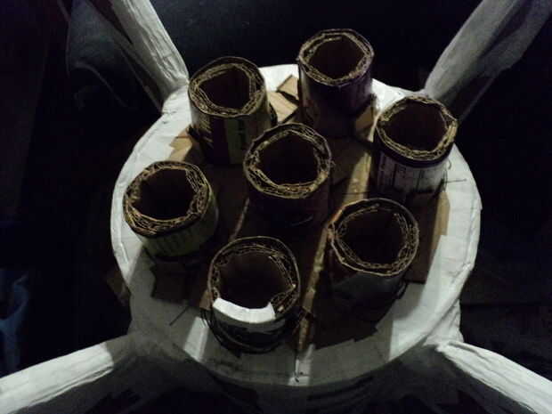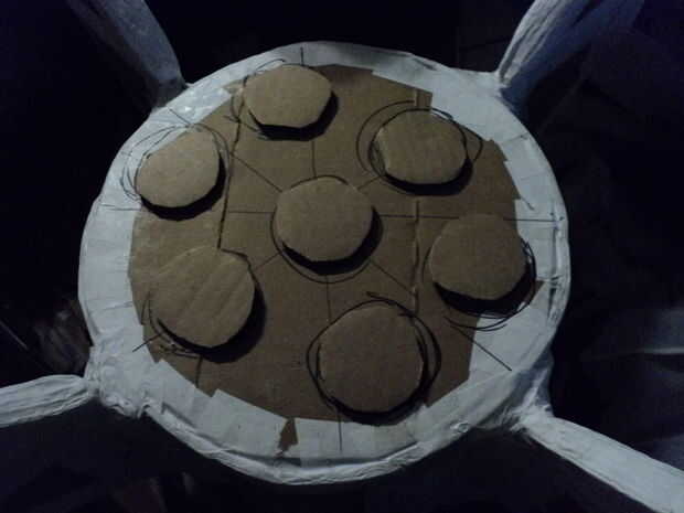 Pongo algunas fichas de cartulina en la parte exterior de la boquilla para simular las tuberías que se enrutan a los gases de escape.