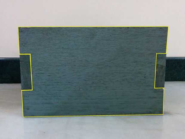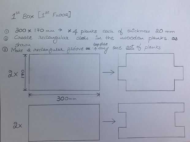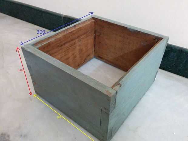 tamaño 300x170mm de grueso 20 mm. crear ranuras rectangulares en los lados y arreglar por conducir clavos o aplicar pegamento como muestra la imagen.
