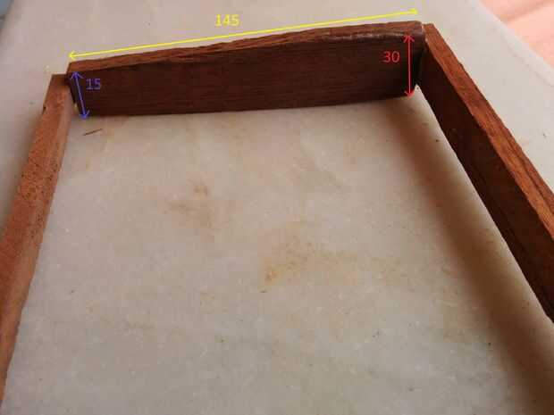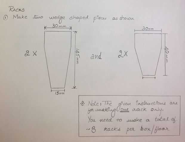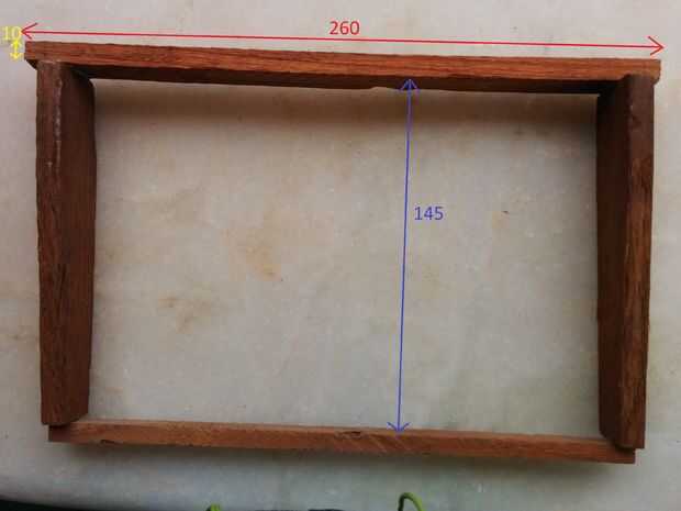 Tomar una pequeña tabla rectangular que es 280x200mm y dos cuñas (consulte el esquema de la dimensión de la cuña). Dejar un espacio de 10 mm de los bordes de la tabla rectangular y fijar el extremo más grande de las cuñas a él. (Ver imágenes) A continuación, tomar una tabla más pequeña 260mm de longitud y sección cuadrada y fijar a los lados abajo/más pequeño de la cuña. (Otra vez, ver imágenes) Su bastidor está ahora completado. Coloque dentro el bock y comprobar si se ajusta y hacer pequeños ajustes si es necesario. Asegúrese de que encaja perfectamente. Si eres feliz con ella, luego ir una por delante y hacer 8 más de estos.