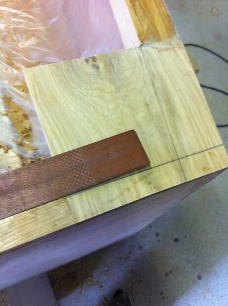 Trabajar "in situ" tiene la ventaja de que las dos líneas se pueden encontrar fácilmente manteniendo una regla contra los bordes y extender sólo la línea del borde. Los enpoints curva fueron elegidos a los muy bordes de las placas.